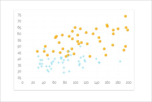 - Points and a trend line in the form of a scatter plot.