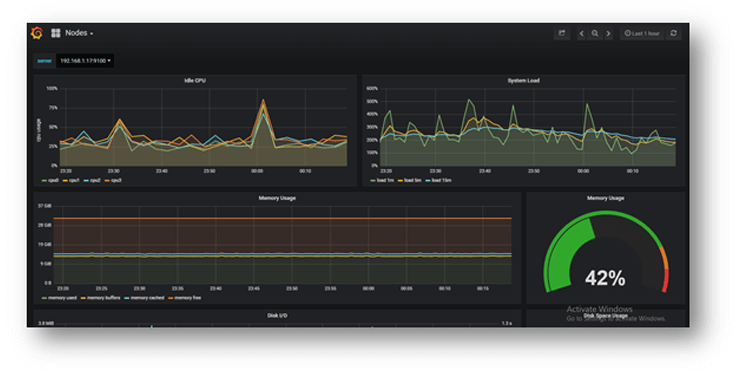 We use Prometheus toolkit to monitor and alert the K8S cluster. We have integrated Grafana on top of the Prometheus metrix to have a meaningful dashboard. This dashboard provides us: